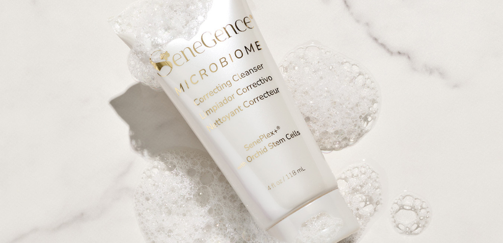 - Microbiome Correcting Cleanser: a gentle exfoliating cleanser that helps preserve your skin barrier’s integrity and natural balance while washing away impurities for a resilient radiance. Infused with probiotics, hyaluronic acid & salicylic acid.